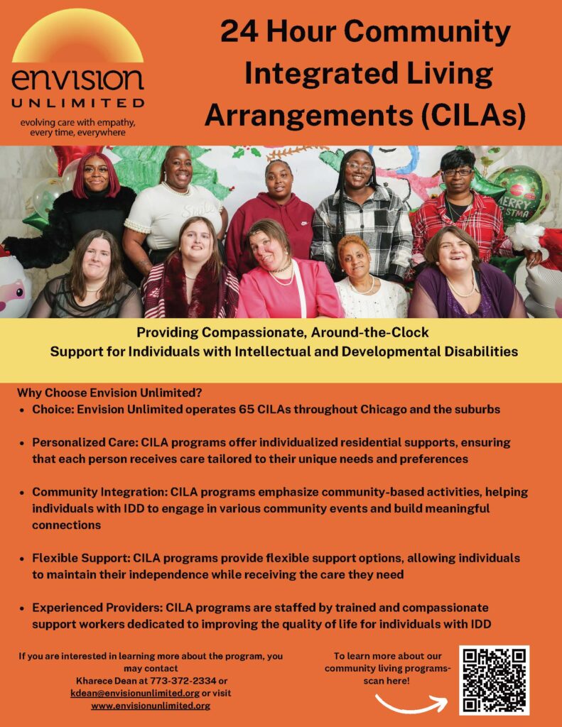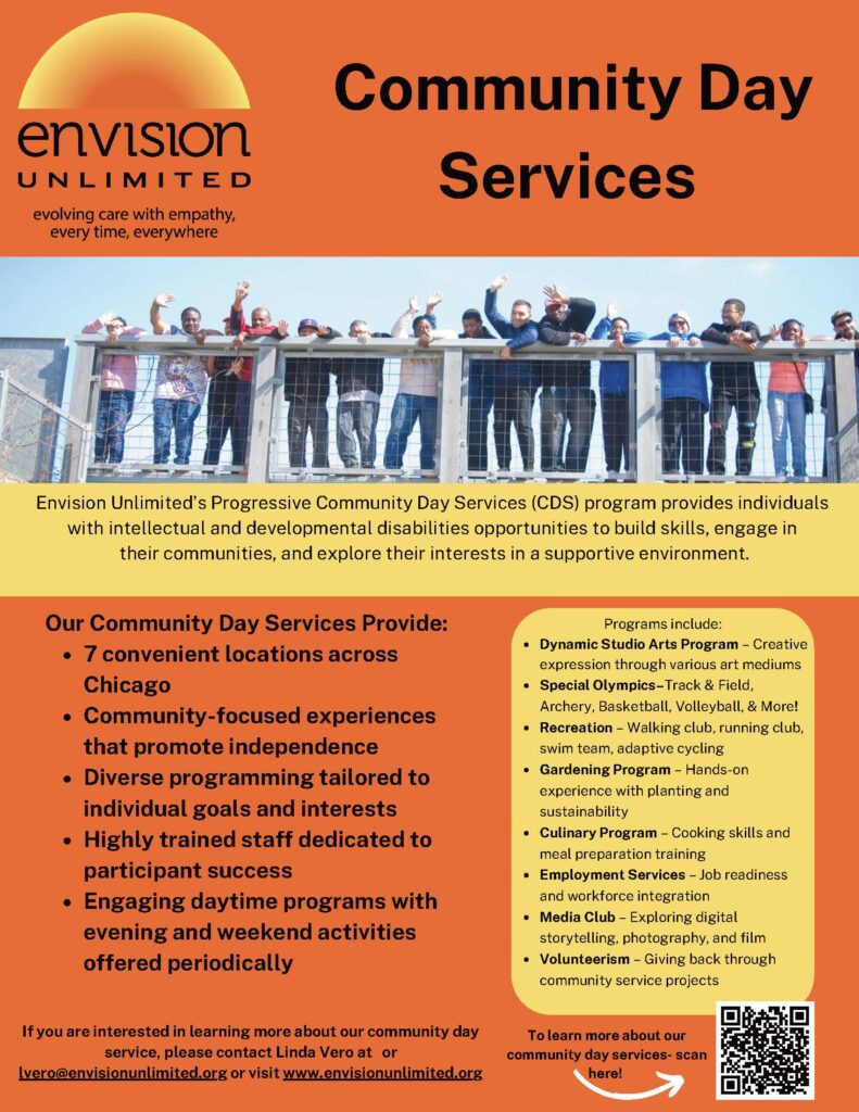 Envision Unlimited is dedicated to empowering individuals with intellectual and developmental disabilities through a lifetime of comprehensive, person-centered support. Our services include community day programs, residential options, employment training, mental health services, and community based recreational activities – ensuring every individual has the opportunity to thrive in an inclusive, supportive environment. With over 75 years of experience, we partner with individuals and families to create personalized pathways to independence, social engagement, and meaningful community participation. Reach out to learn more about how we can help your loved one live their fullest life!