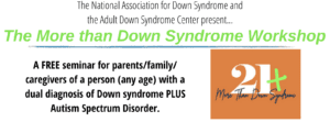 A FREE seminar for parents/family/ caregivers of a person (any age) with a dual diagnosis of Down syndrome PLUS Autism Spectrum Disorder.