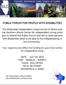 Hosted by the Statewide Independent Living Council of Illinois and the Southern Illinois Center for Independent Living.